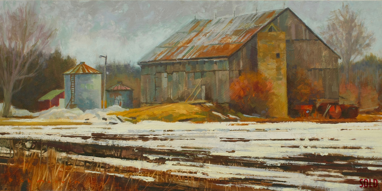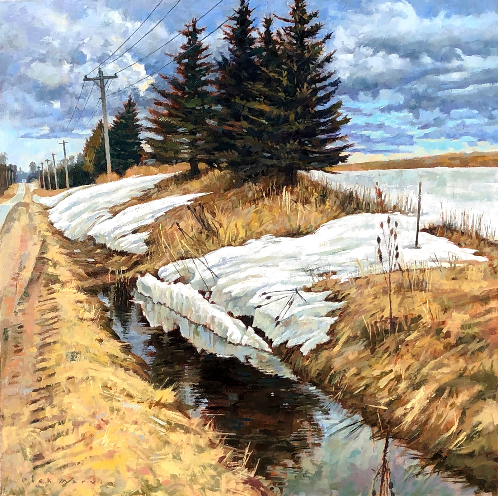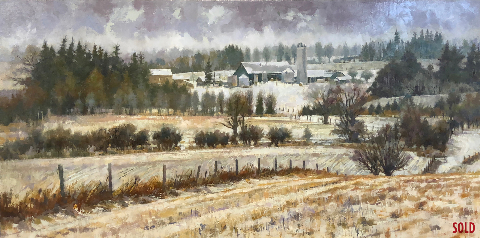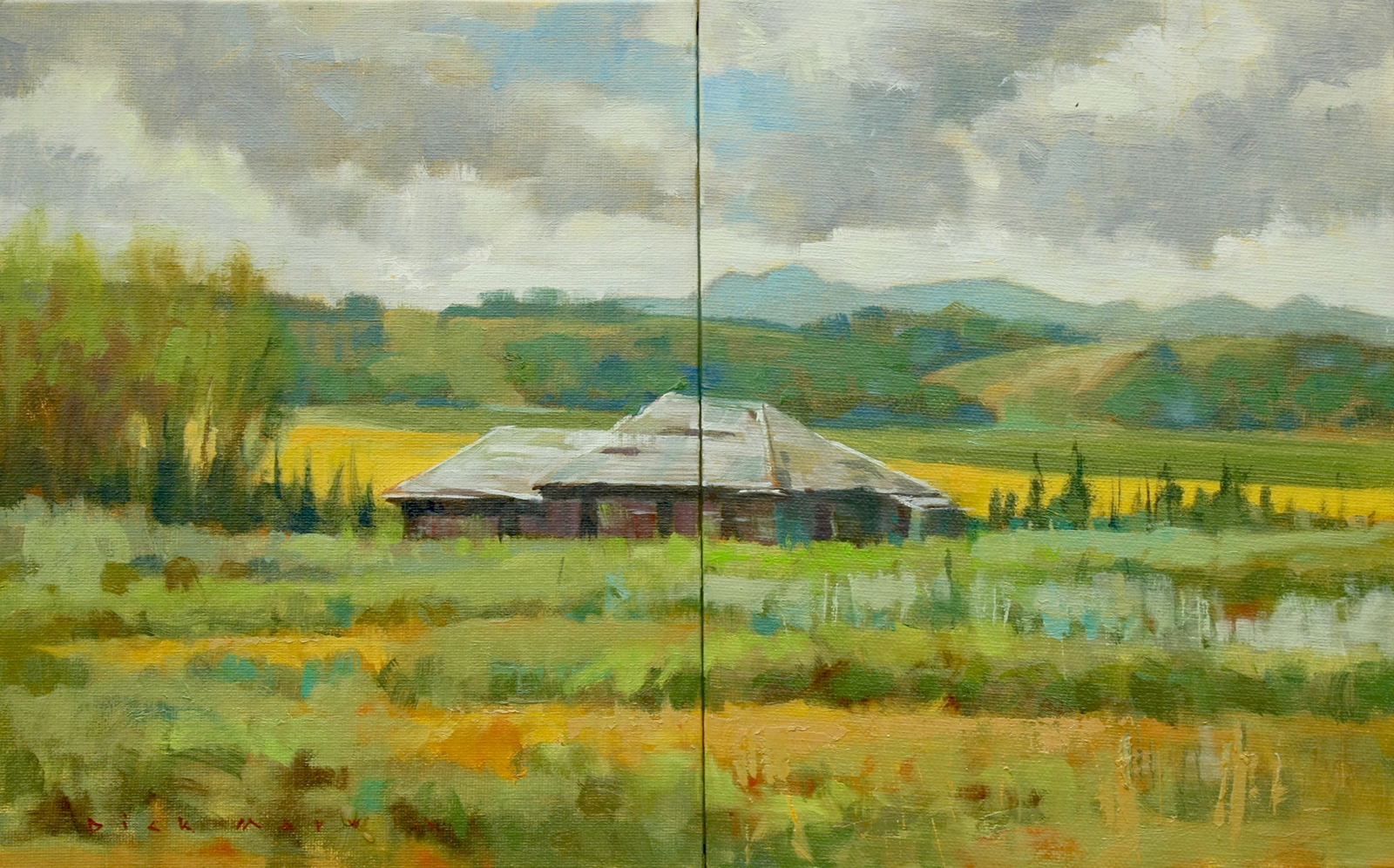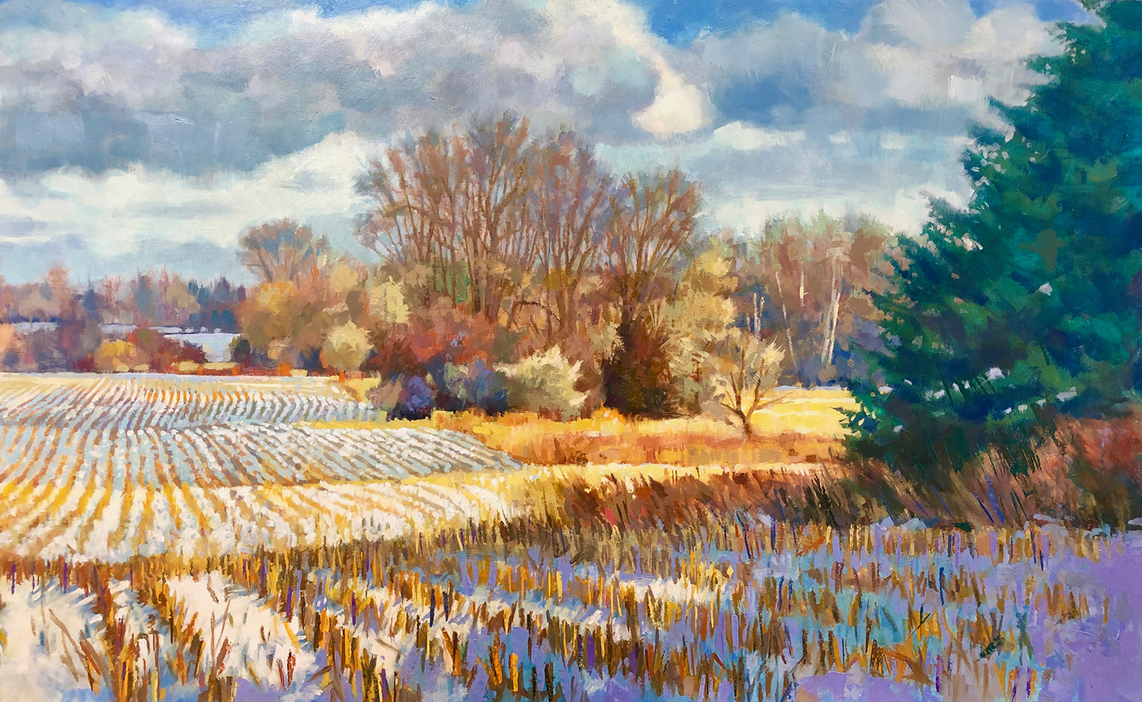 I grew up under the big skies of southern Saskatchewan, with its fertile prairies and endless horizon. I have lived and worked for more than four decades in rural Ontario, surrounded by a patchwork of compact fields, wood lots, rivers and lakes. These sights and sensations have inspired and infused themselves in my painting.