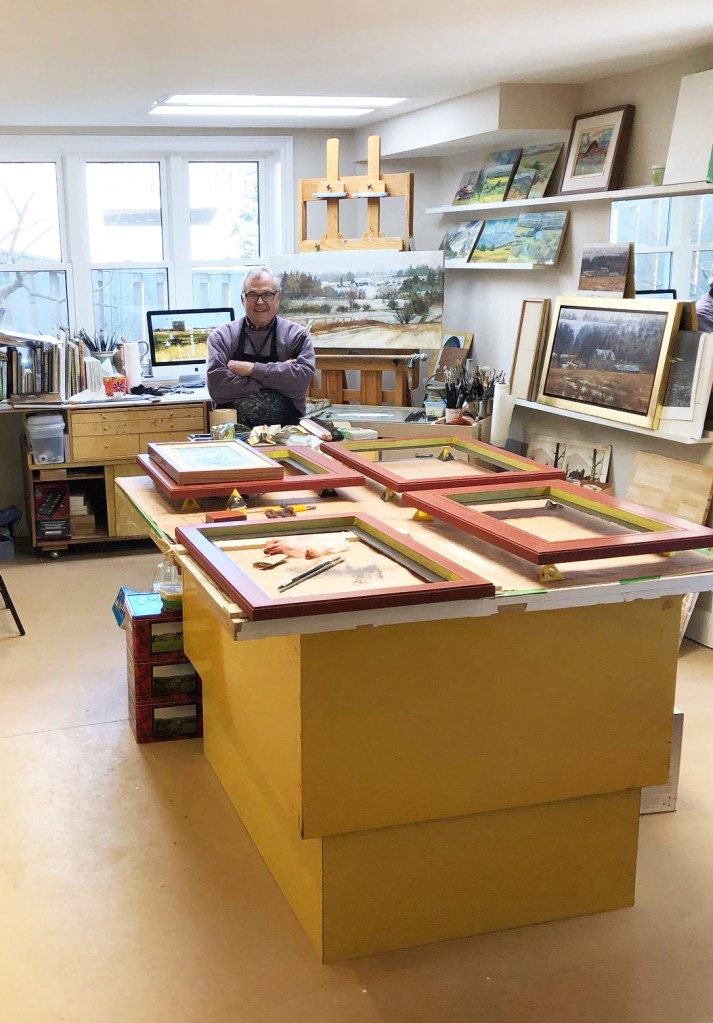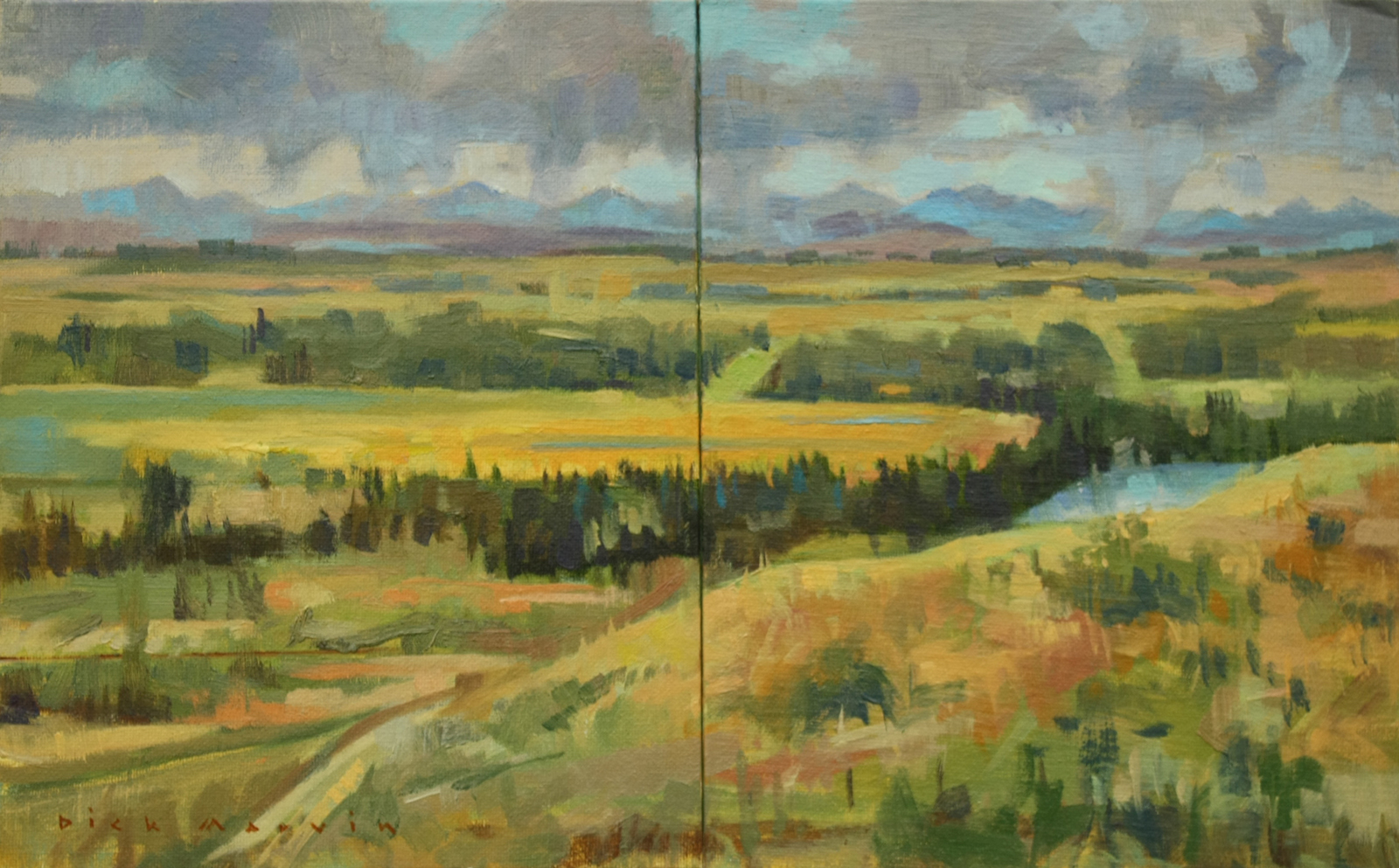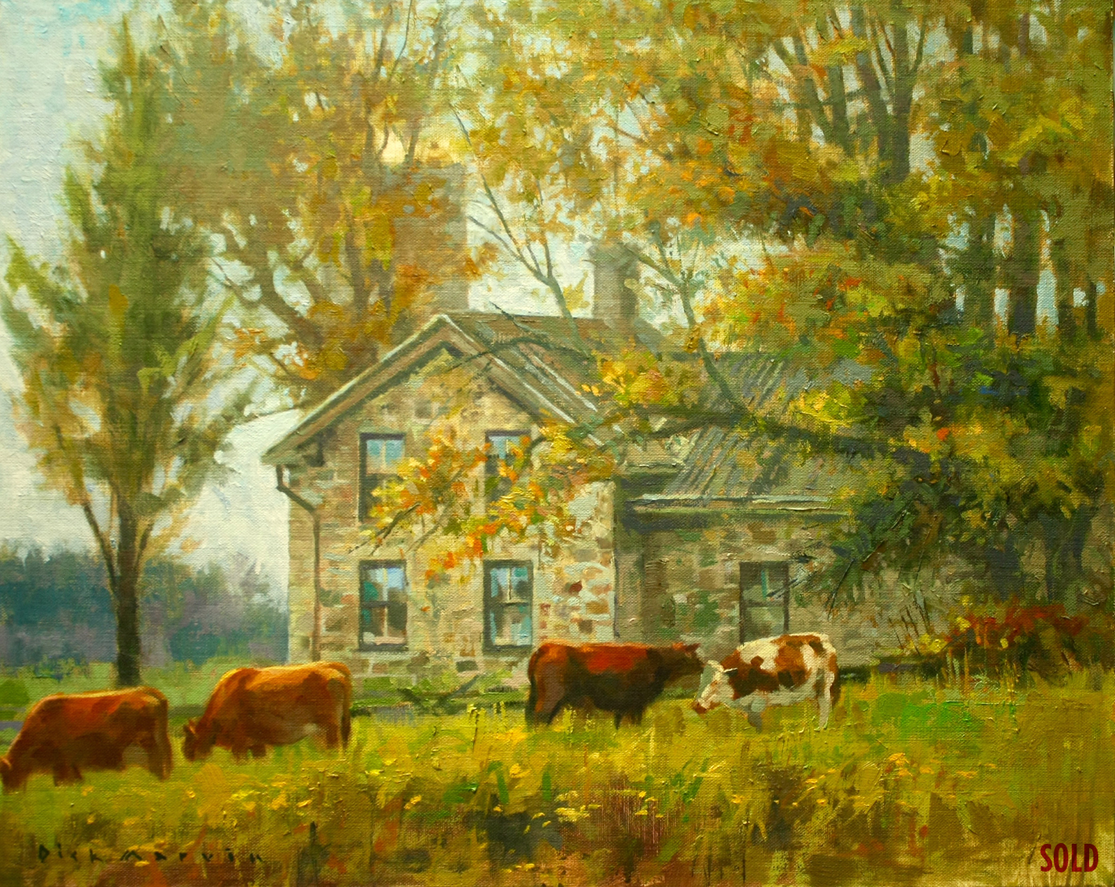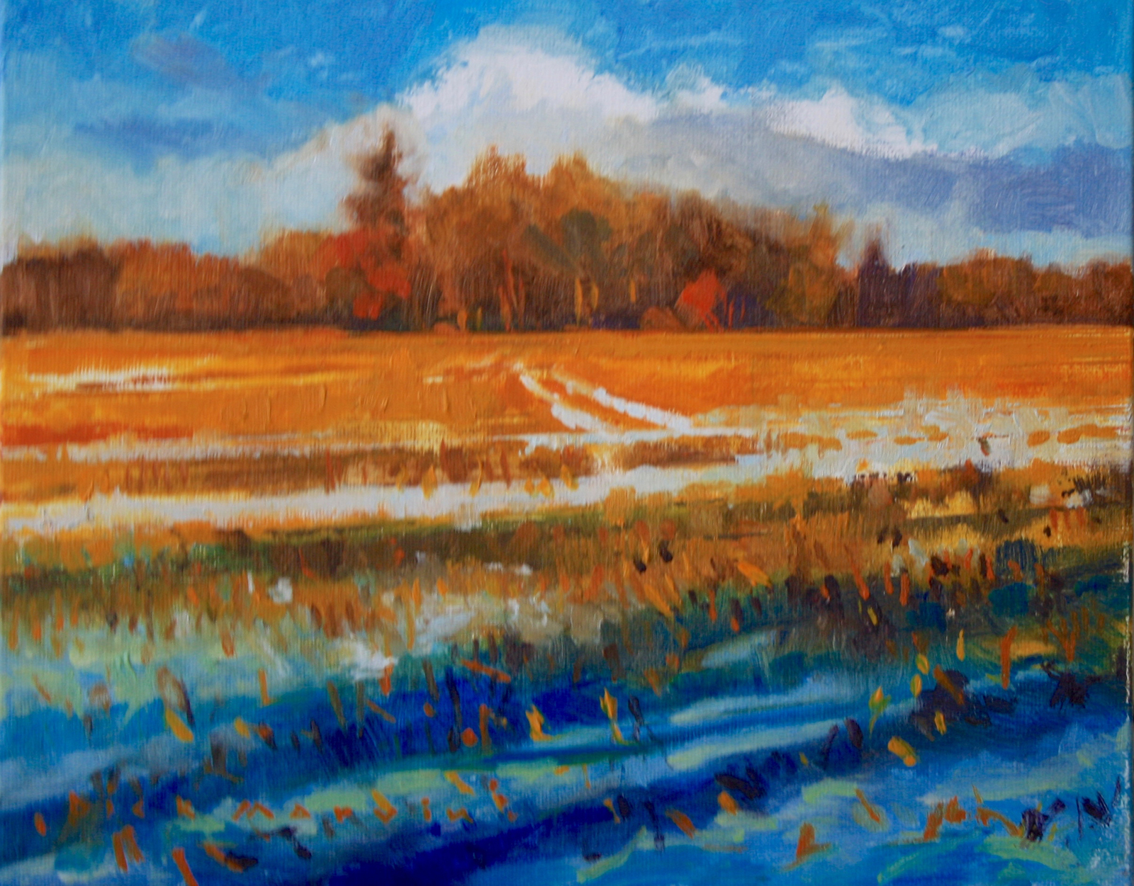 I grew up under the big skies of southern Saskatchewan, with its fertile prairies and endless horizon. I have lived and worked for more than four decades in rural Ontario, surrounded by a patchwork of compact fields, wood lots, rivers and lakes. These sights and sensations have inspired and infused themselves in my painting.