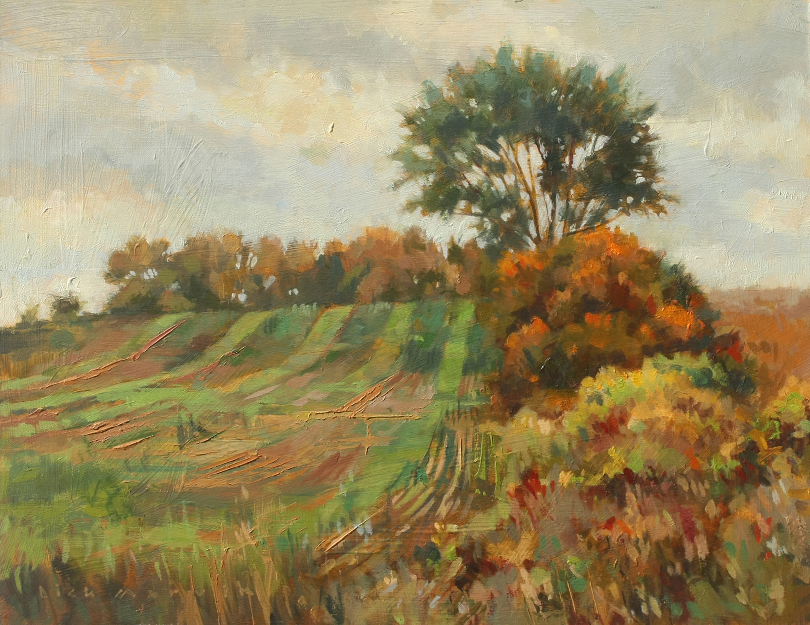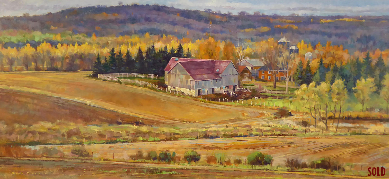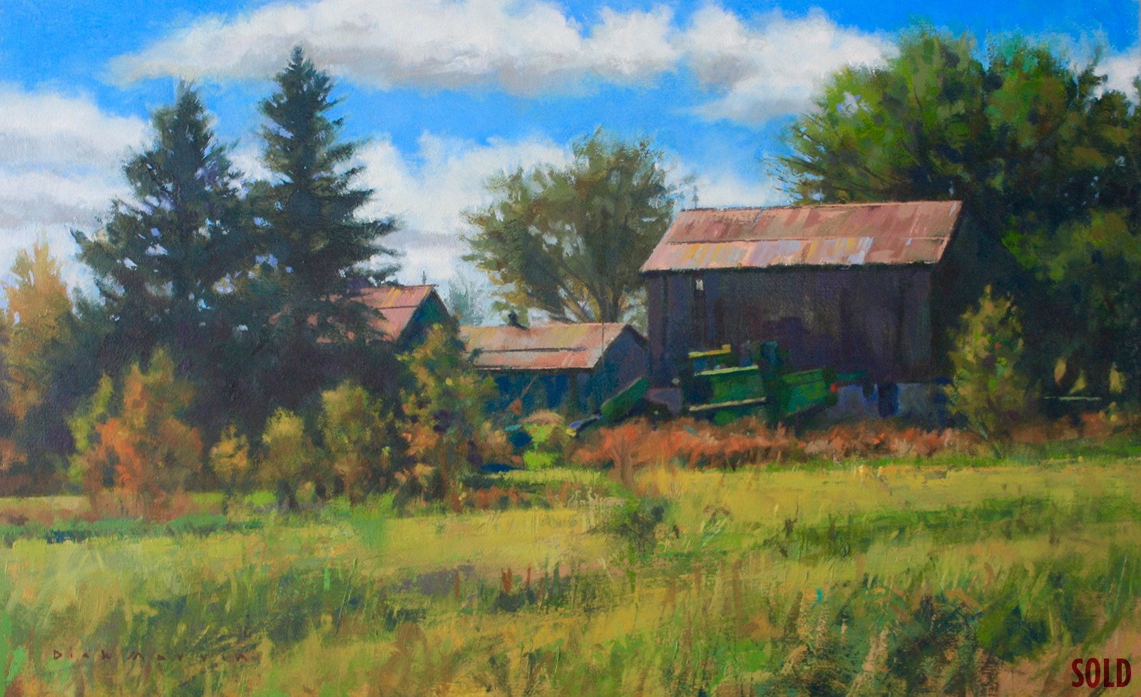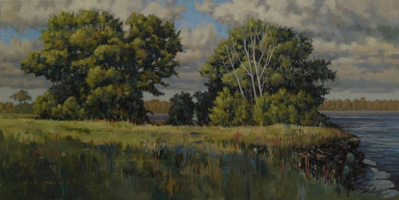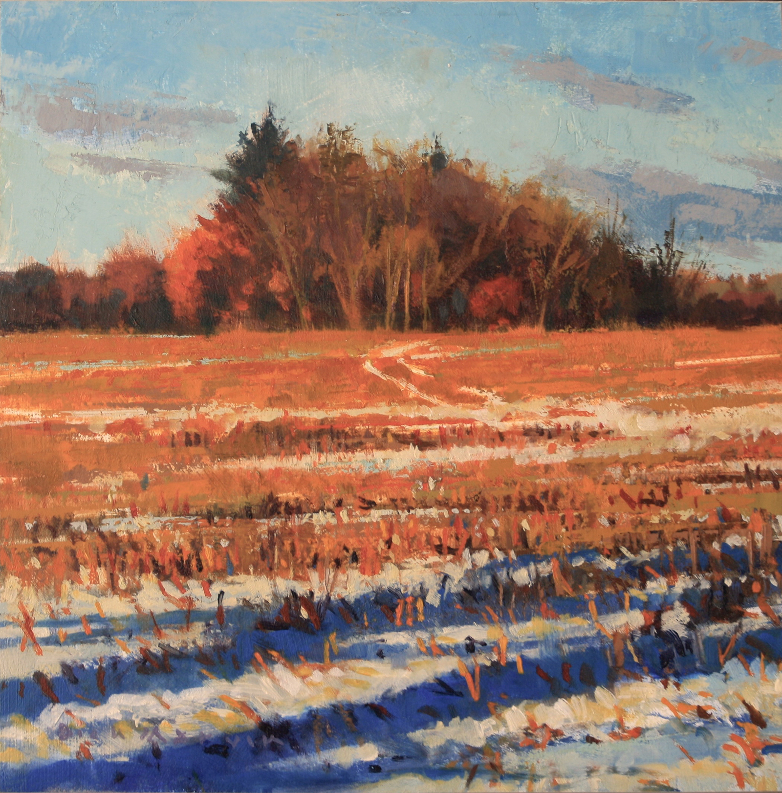 I grew up under the big skies of southern Saskatchewan, with its fertile prairies and endless horizon. I have lived and worked for more than four decades in rural Ontario, surrounded by a patchwork of compact fields, wood lots, rivers and lakes. These sights and sensations have inspired and infused themselves in my painting.