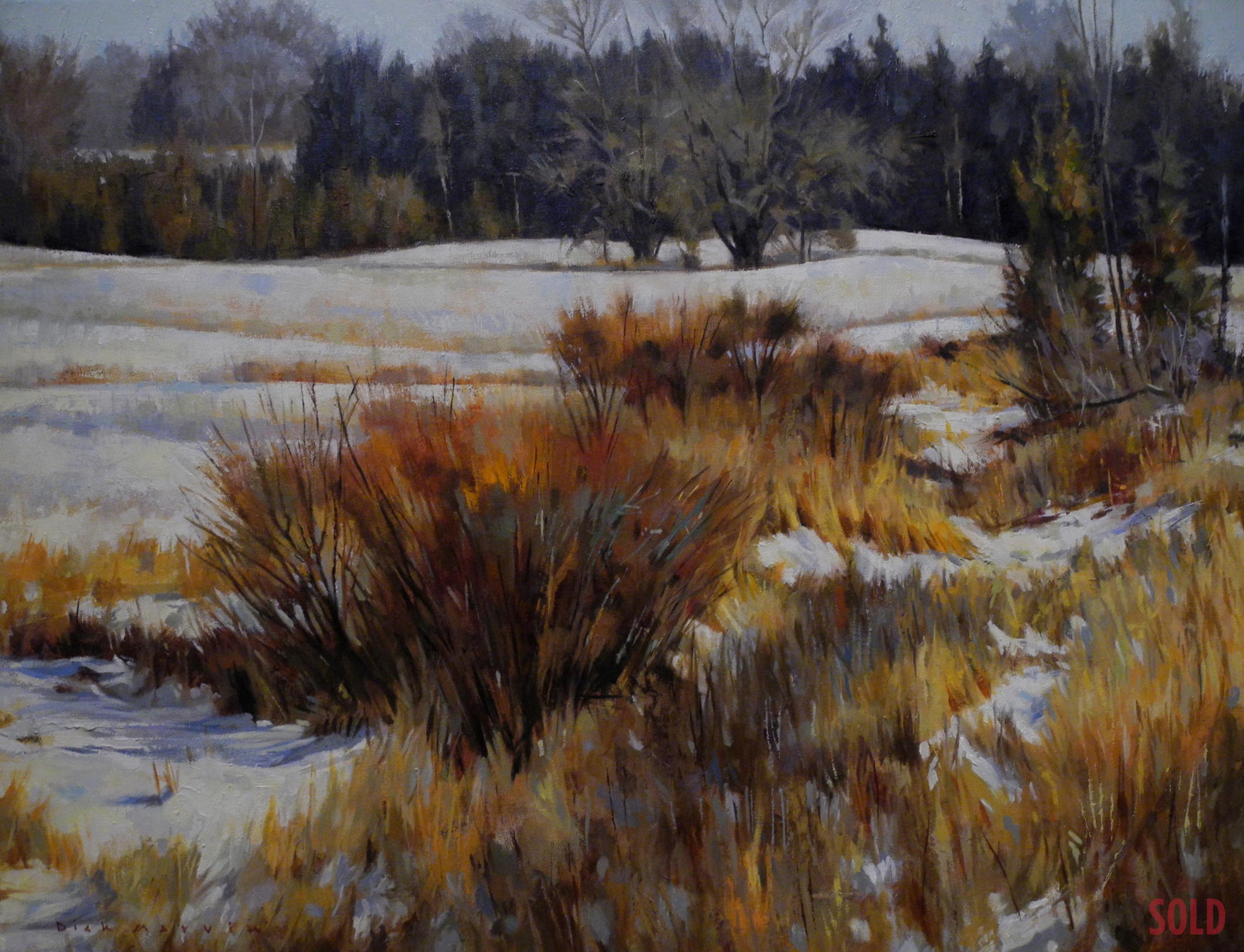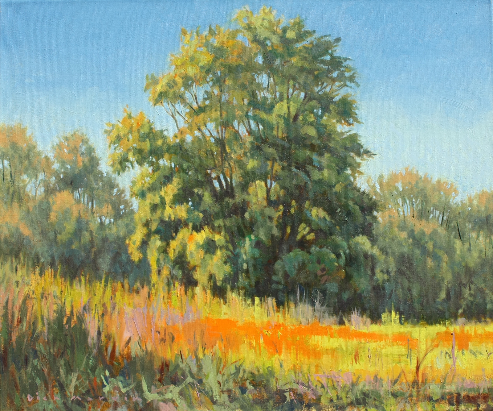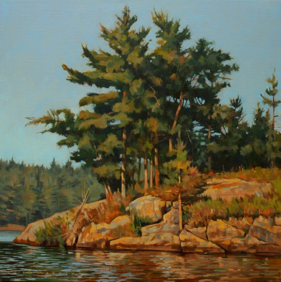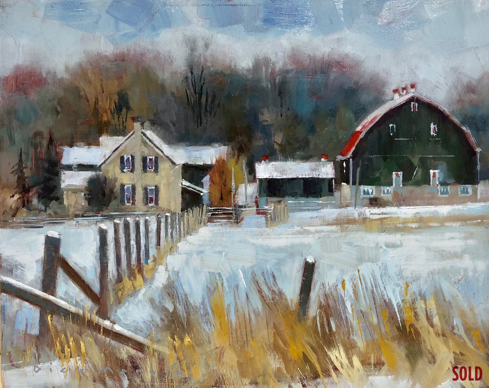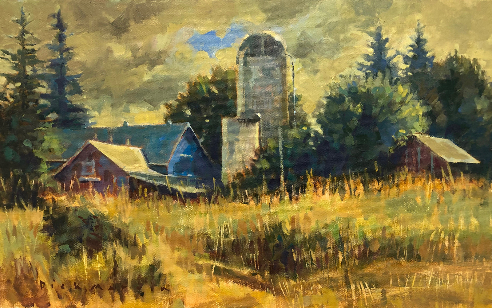 I grew up under the big skies of southern Saskatchewan, with its fertile prairies and endless horizon. I have lived and worked for more than four decades in rural Ontario, surrounded by a patchwork of compact fields, wood lots, rivers and lakes. These sights and sensations have inspired and infused themselves in my painting.