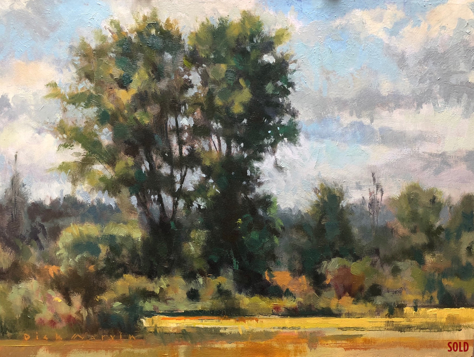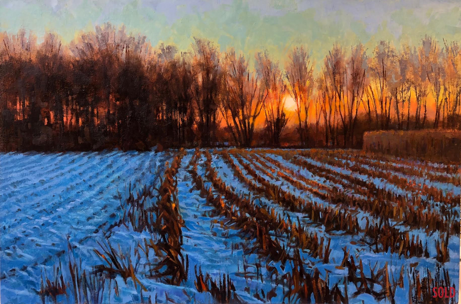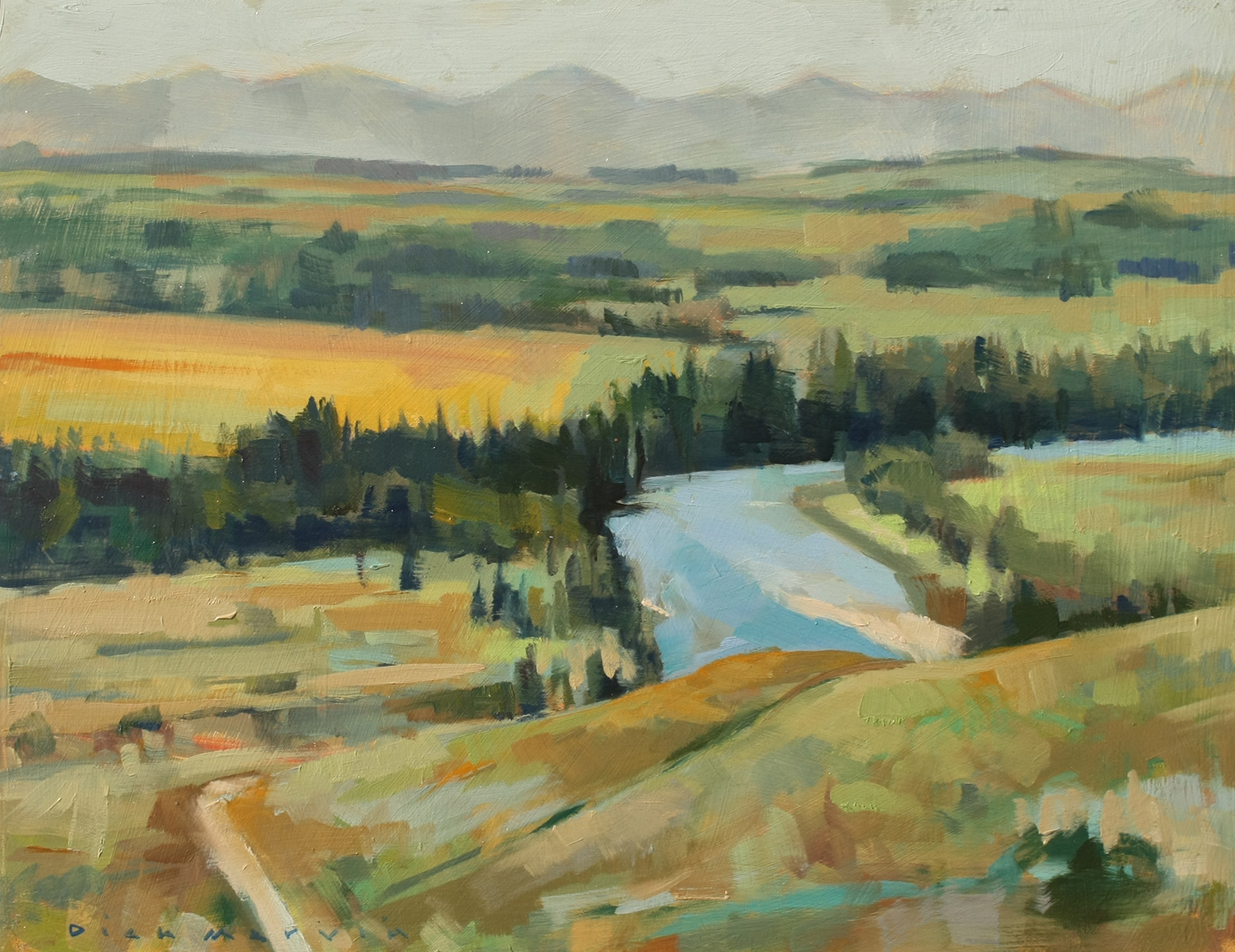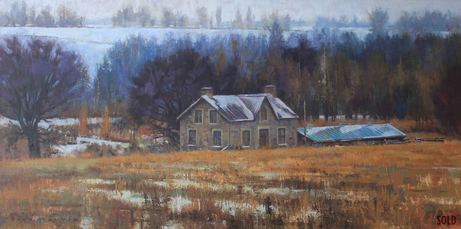 I grew up under the big skies of southern Saskatchewan, with its fertile prairies and endless horizon. I have lived and worked for more than four decades in rural Ontario, surrounded by a patchwork of compact fields, wood lots, rivers and lakes. These sights and sensations have inspired and infused themselves in my painting.