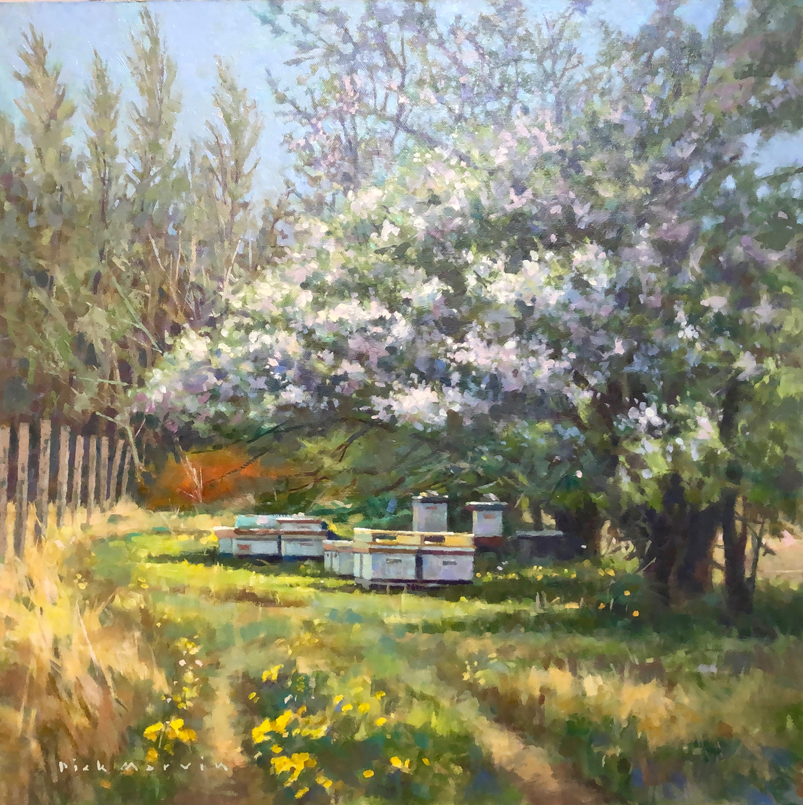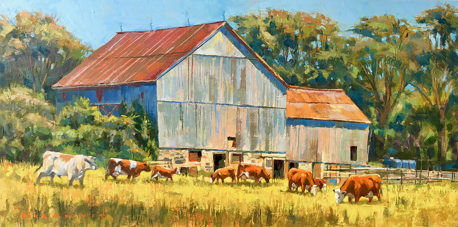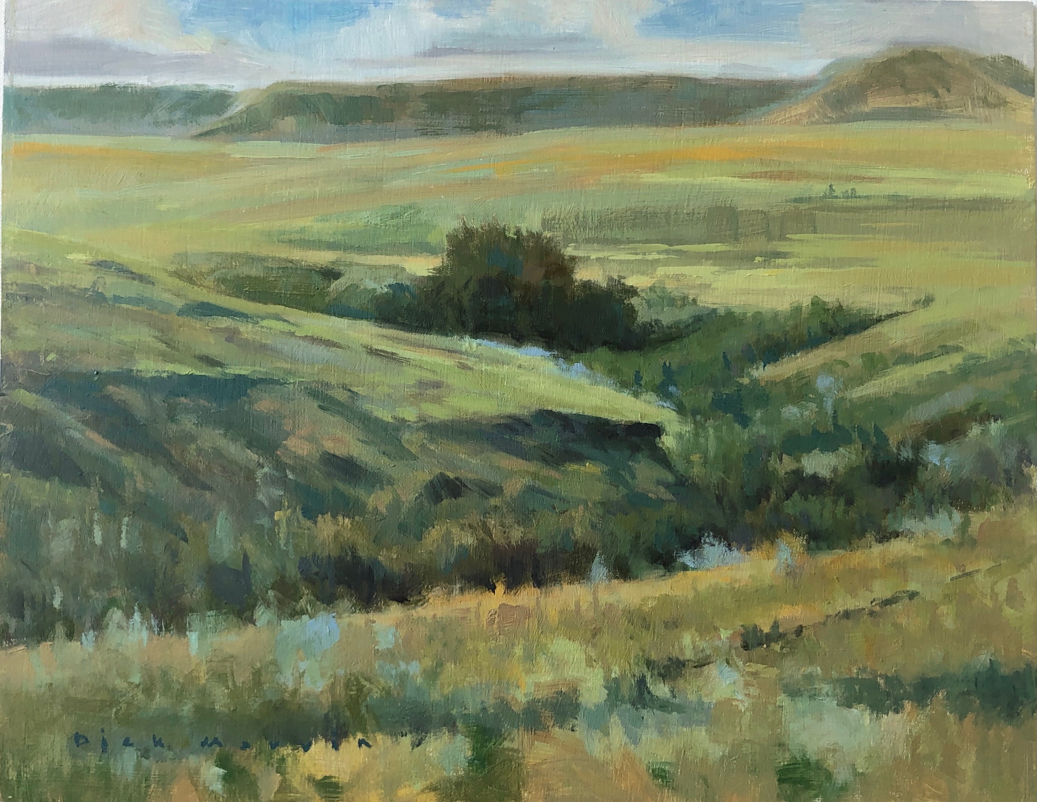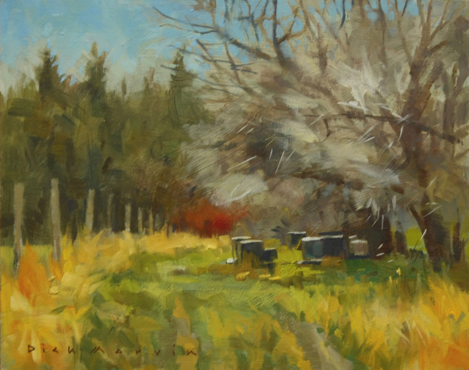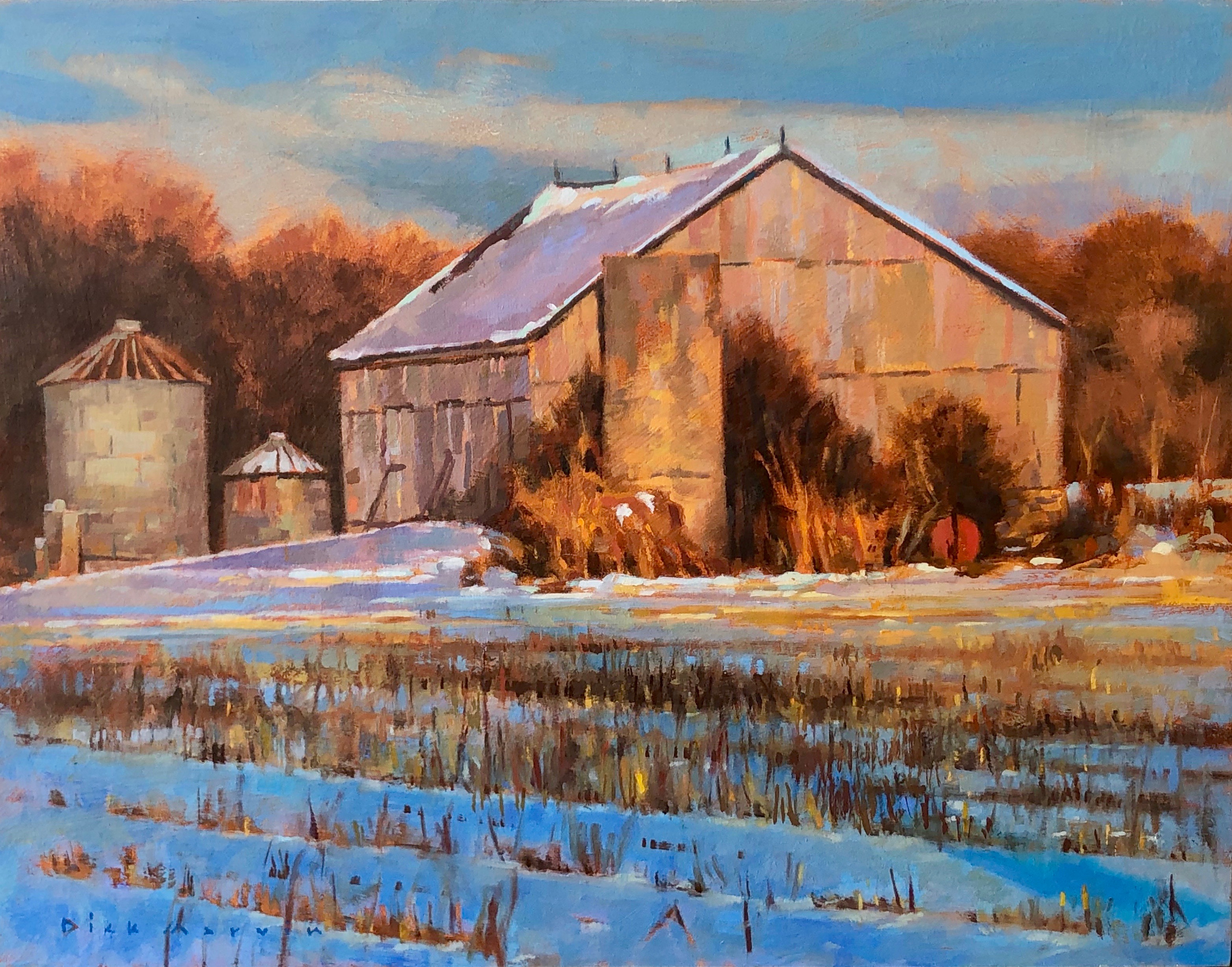 I grew up under the big skies of southern Saskatchewan, with its fertile prairies and endless horizon. I have lived and worked for more than four decades in rural Ontario, surrounded by a patchwork of compact fields, wood lots, rivers and lakes. These sights and sensations have inspired and infused themselves in my painting.