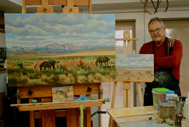 While visiting and Plein Air Painting near Calgary last August I received a commission from Jack and Diane Avrill to paint one of the view from the back of their new home just “West of Calgary”. The landscape is beautiful rolling ranch land with the Mountains in the background. We are in the process of making plans to spend a good part of this coming summer in southern Alberta.